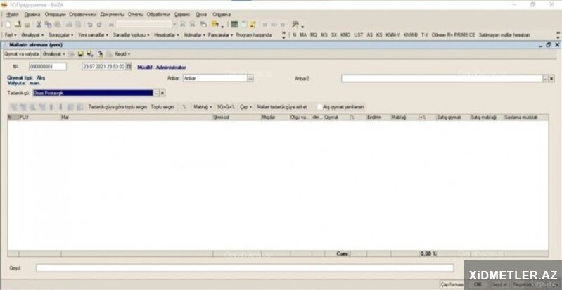 1C proqramı tədris versiyası.