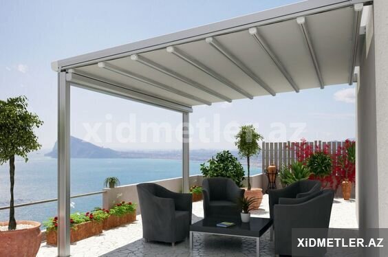 alüminum profillərdən yığılan perqola hərəkətli tavan,