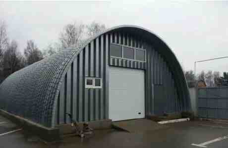 Tağ formalı metal anbar və istehsalat hangarı yüksək möhkəmliklə geniş sahələr üçün nəzərdə tutulmuş konstruksiyadır. Müxtəlif ölçü və təyinatlara uyğun modul şəkildə qurularaq tam açar təhvil formada təqdim olunur. Qiymət 1 kvadrat metr sahəyə əsasən hesablanır və 1000 kvadrat anbar üçün ümumi qiymət 165000 manatdır.