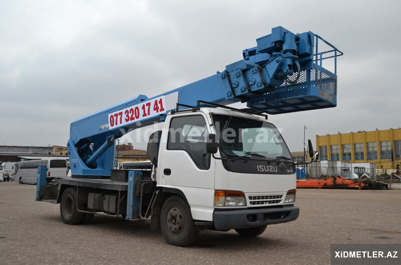15 Azn Reklam , montaj , fasad, rənglənmə, metal konstruksiyaların yığılması, təmizlik işləri, xətlərin çəkilməsi və digər təmir tikinti işləri üçün 65 metrə qədər yüksəkliyə qalxa bilən avtosəbətler icarəyə verilir. 20 ildən