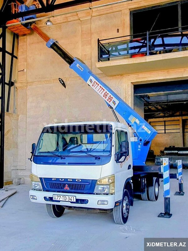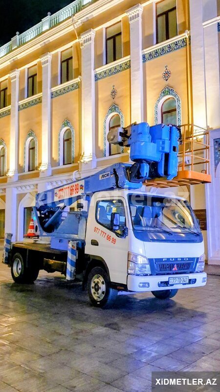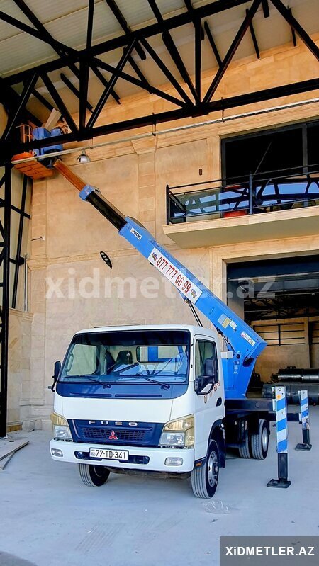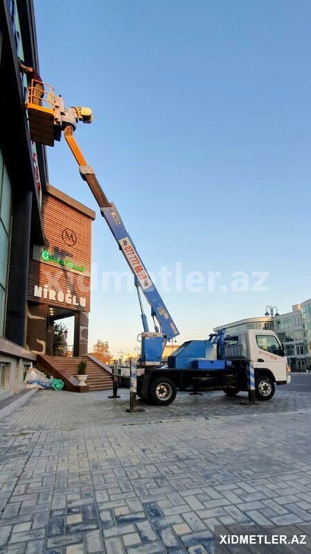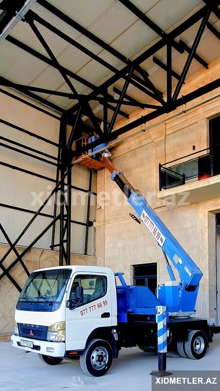 15 Azn Reklam , montaj , fasad, rənglənmə, metal konstruksiyaların yığılması, təmizlik işləri, xətlərin çəkilməsi və digər təmir tikinti işləri üçün 65 metrə qədər yüksəkliyə qalxa bilən avtosəbətler icarəyə verilir. 20 ildən