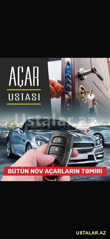 10 Azn - hər növ avtomobil və ev qapilarinin zədəsiz açilmasi və təmiri. - avtomobil açarlarinin təmiri, praqramlaşdirilmasi və sxema təmiri. - şlaqbaun və jaluz qaraj pultlarinin çoxaldilmasi. - blok giriş düymələrinin