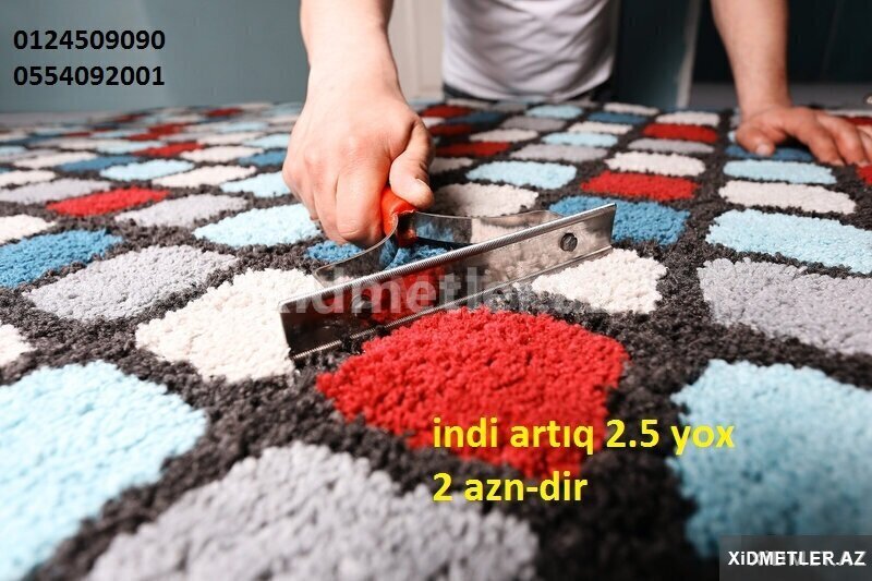 1 AznXalçanın təmizliyi üçün düzgün ünvan seçmək əsasdır. 1 kv.m qiyməti 2 manat olmaqla xalça və digər tekstil məhsullarının yuyulmasını həyata keçirirəm. Xidmət istiqamətləri - Xalça yuma - Divan yuma - Pled və ədyal