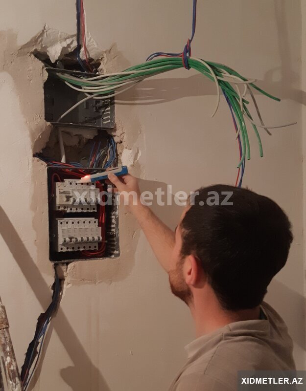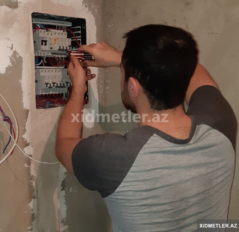 (380 V) 3 faz elektrik kabelleri, (220 V) elektrik açarları termik role, kontaktör, puskater şit, Çilçiraq, Listura Kulçatellerin, Spot, Bra, Plafon, Gizli İşıq, Razetka, Avtomat, Şit Quraşdırılmasını edirəm
