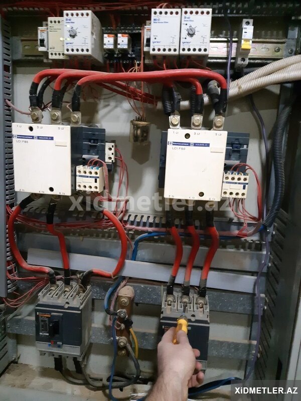 (380 V) 3 faz elektrik kabelleri, (220 V) elektrik açarları termik role, kontaktör, puskater şit, Çilçiraq, Listura Kulçatellerin, Spot, Bra, Plafon, Gizli İşıq, Razetka, Avtomat, Şit Quraşdırılmasını edirəm