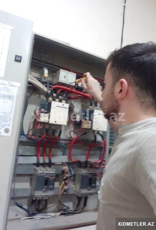 (380 V) 3 faz elektrik kabelleri, (220 V) elektrik açarları termik role, kontaktör, puskater şit, Çilçiraq, Listura Kulçatellerin, Spot, Bra, Plafon, Gizli İşıq, Razetka, Avtomat, Şit Quraşdırılmasını edirəm