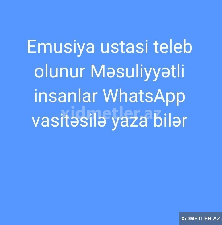 Emusiya ustasi teleb olunur Məsuliyyətli insanlar WhatsApp vasitəsilə yaza bilər