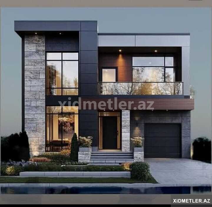 Müasir və funksional memarlıq həlləri olan fərdi yaşayış evləri layihə əsasında tikintisi.