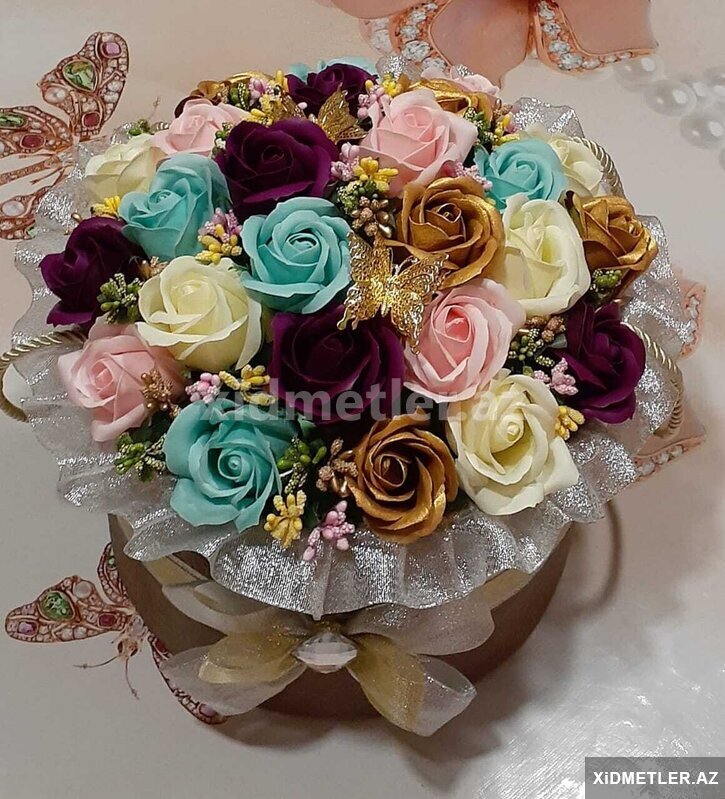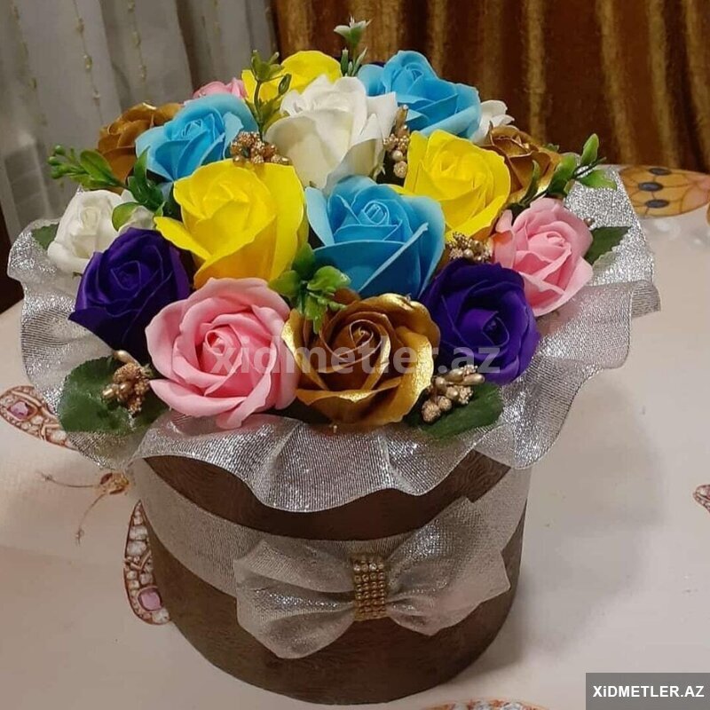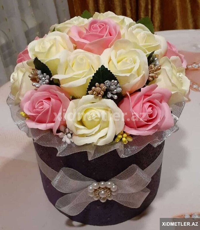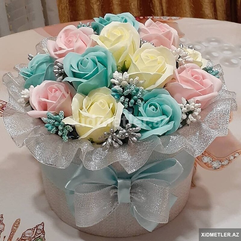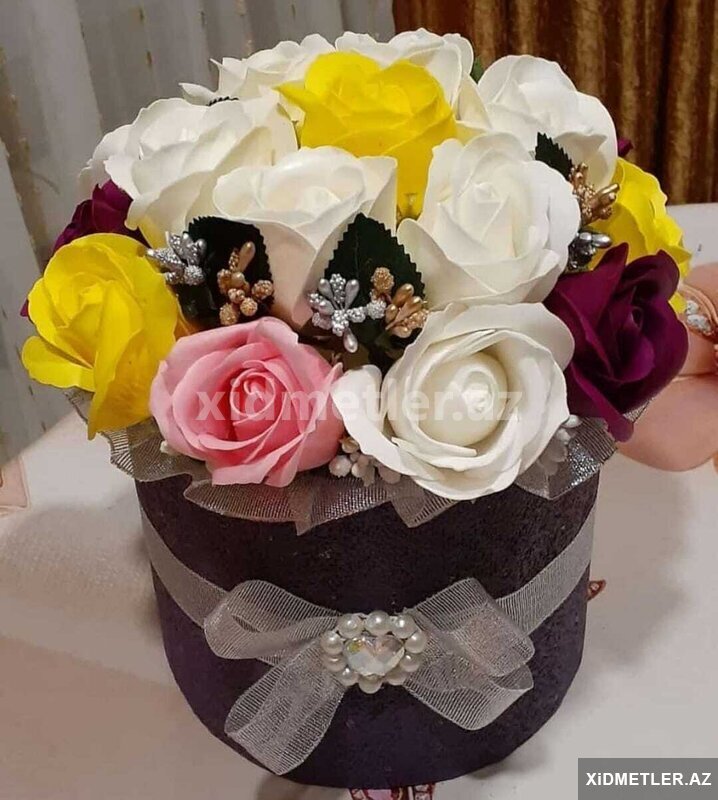 5 Azn Gul buketleri sabun gullerden hazirlanir.Bir omur boyu solmayan, xarab olmayan, oz gozelliyini itirmeden qalan buketlerin sifarisi en az 1 gun onceden goturulur.Sifaris ucun whatsapa yaza ve ya zeng ede bilersiniz.