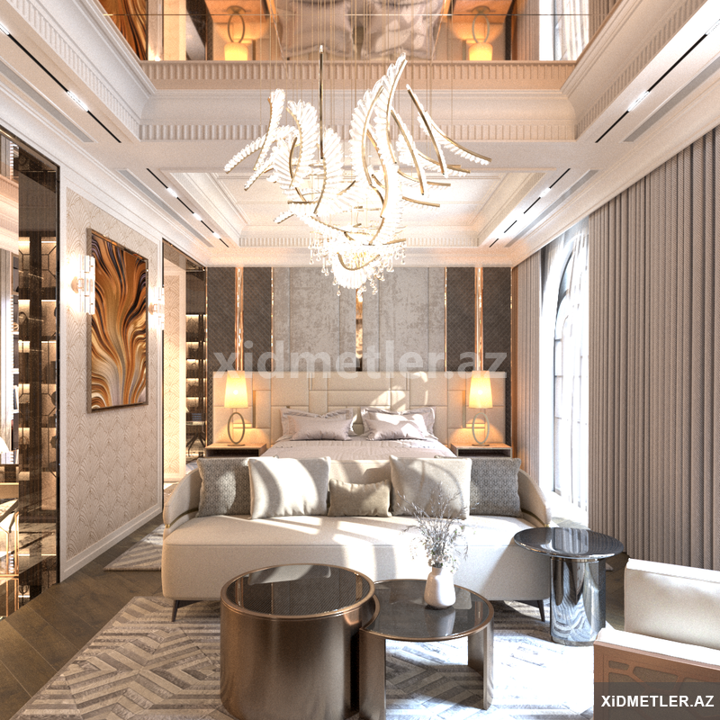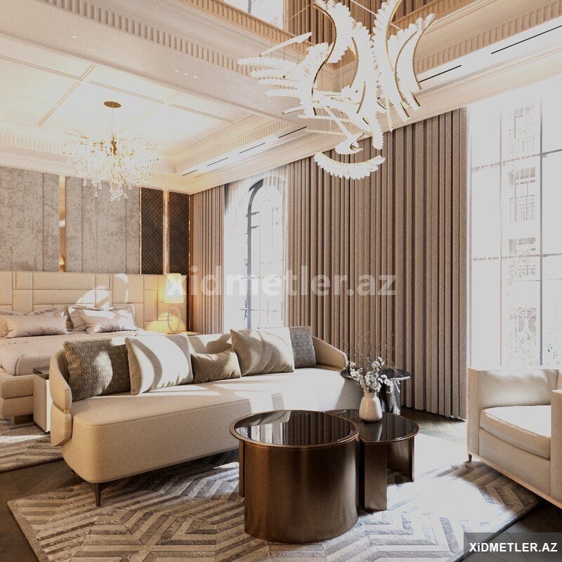Layihəyə mebel yerləşimi, rəng seçimi, işıqlandırma və dekor elementləri daxildir. Hazırlanan dizayn realistik 3D vizualizasiya (render) formasında təqdim olunur ki, məkanın son görünüşünü əvvəlcədən görmək mümkün olsun.