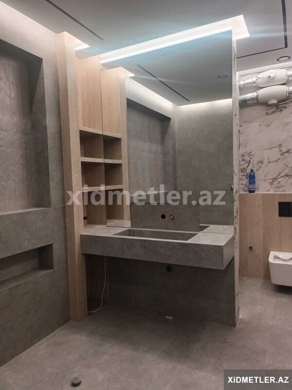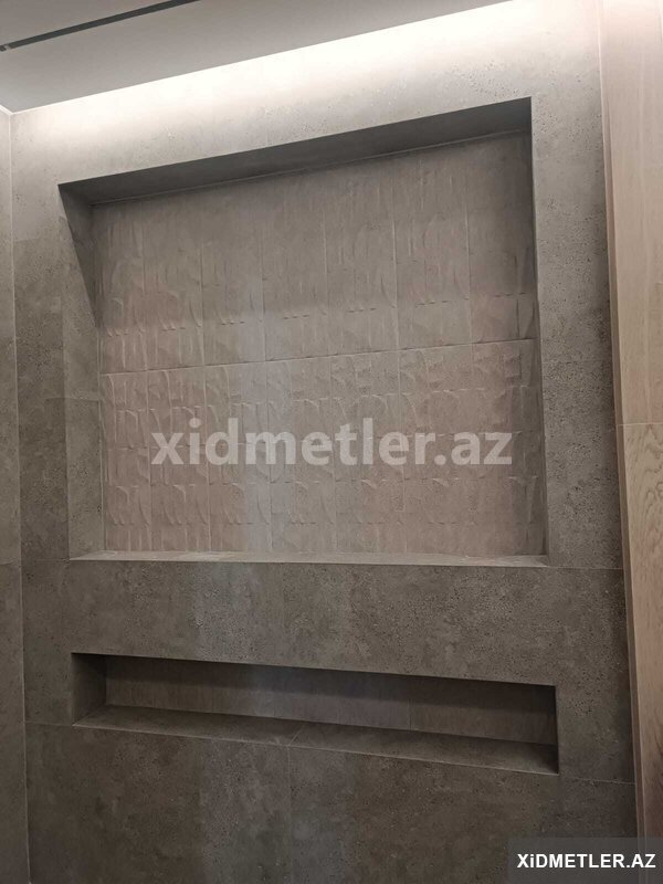- Hamam və duş üçün divar daxili nışaların (raf) hazırlanması, LED işıq üçün yuvaların açılması