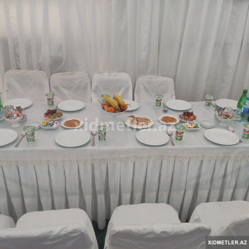 221 Azn Vip Çadır 2- Sadə Çadır 3- Dəfn maşını 4- Aşbaz 5- Qabyuyan 6-Salatçı 7- Çayçı 8-Ofisant Kişi & Qadın 9- Mühafizəçi 10- Mikrofon 11- Stol-Stul 12- Qab-qaşıq 13- Somavar 14- Soyuducu 15- Hər növ tədbirlərin