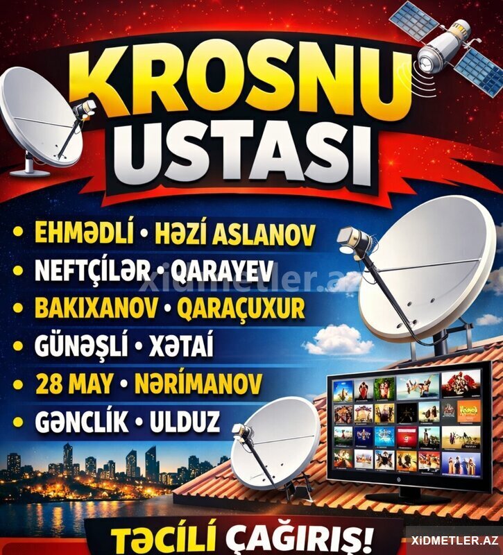 20 Azn Krosna Ustası Əhmədli Həzi Aslanov Krosnu ustası Bakı! Əhmədli, Həzi Aslanov, Neftçilər, Qarayev və ətraf ərazilərdə krosnu antena quraşdırılması və təmiri xidmətləri göstərilir.