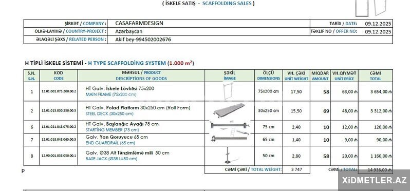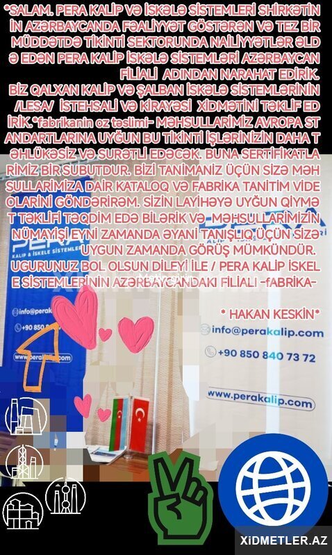 30 AznLesaların satişi, icarəsi, quraşdırılması və sökülməsi sahəsində xidmətlərimiz, təcrübəli və peşəkar ustalar tərəfindən yüksək keyfiyyət standartlarına uyğun şəkildə həyata keçirilir. Təhlükəsizlik qaydalarına tam