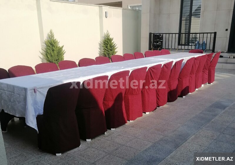 Toy, nişan, yas, məclis, ailə yığıncaqları və digər tədbirlər üçün uyğun banket komplekti. Masalar birləşdirilərək uzun sıra düzümü yaradıla bilər.