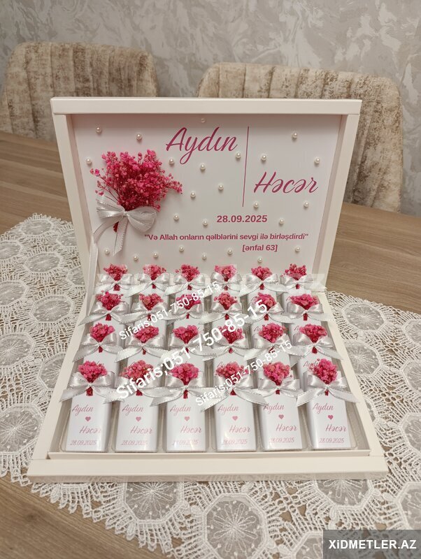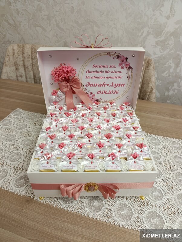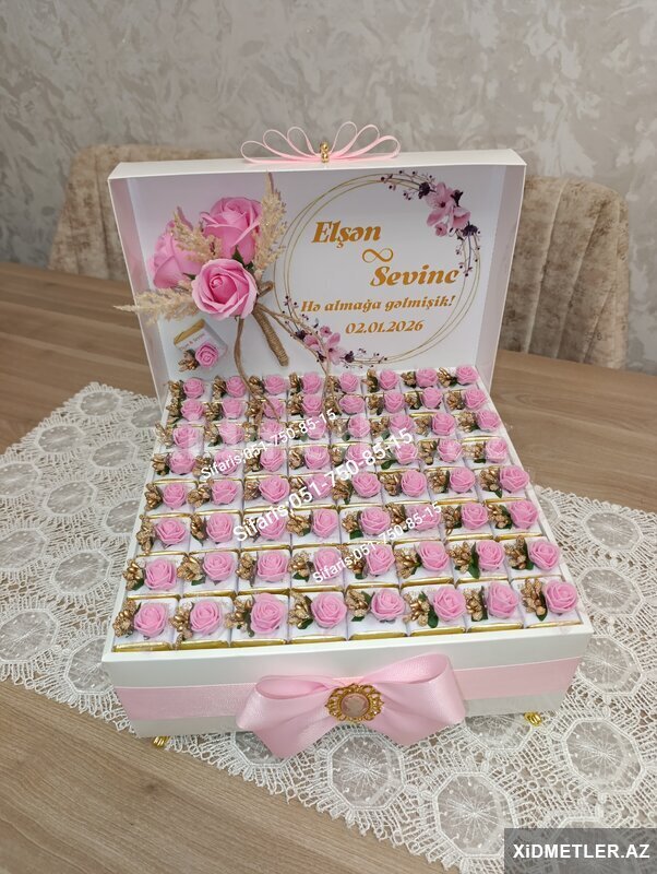 Nisan, Heri, Elcilik, Toy, Xina, Ad gunu, xestexana cixisi, 40 gunluk ve basqa ozel gunleriniz ucun sokolad xoncalari sifarisle hazirlanir.Sifarisler en az 2-3 gun onceden goturulur Sifaris ucun whatsapa yaza ve ya zeng ede bilersiniz.