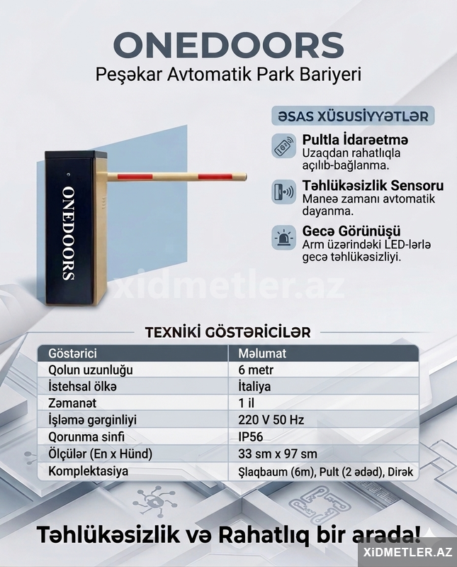ONEDOORS Peşəkar Avtomatik Park Bariyeri
