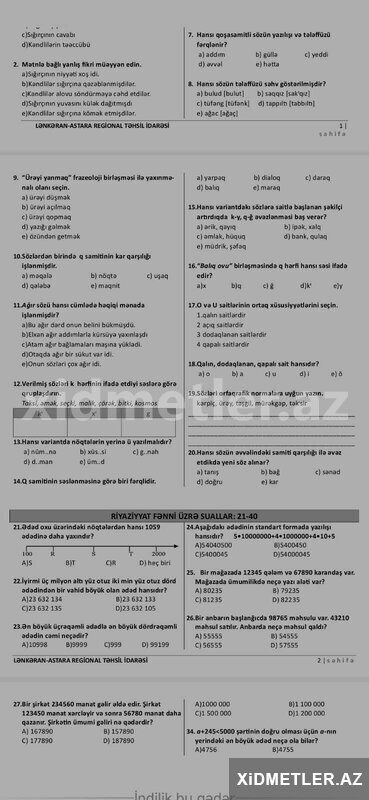 1-5 ve 5-11 hazırlığı buraxılış imtahanlarına hazırlıq rus və Azərbaycan sektoru üçün