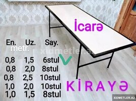 10 Azn Ad günləri, nişan, xına, toy axşamı, tədbirlər və ya digər xüsusi günlər üçün günlük icarəyə verilir. - Ev, daxili və açıq məkan tədbirləri üçün. - MASA ölçüləri (en x uzunluq, metr) və yerləşmə tutumu: 0.8x1.5 -