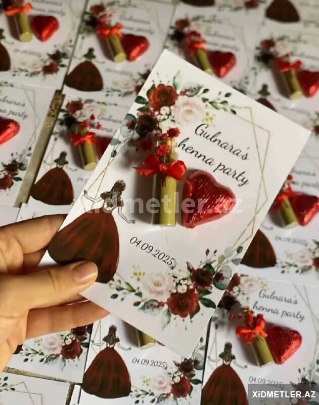 5 Azn Nigah konfet xoncalari sifarisle hazirlanir.Sifaris ucun bir nece gun onceden yazilin.Whatsapa yaza ve zeng ede bilersiniz.