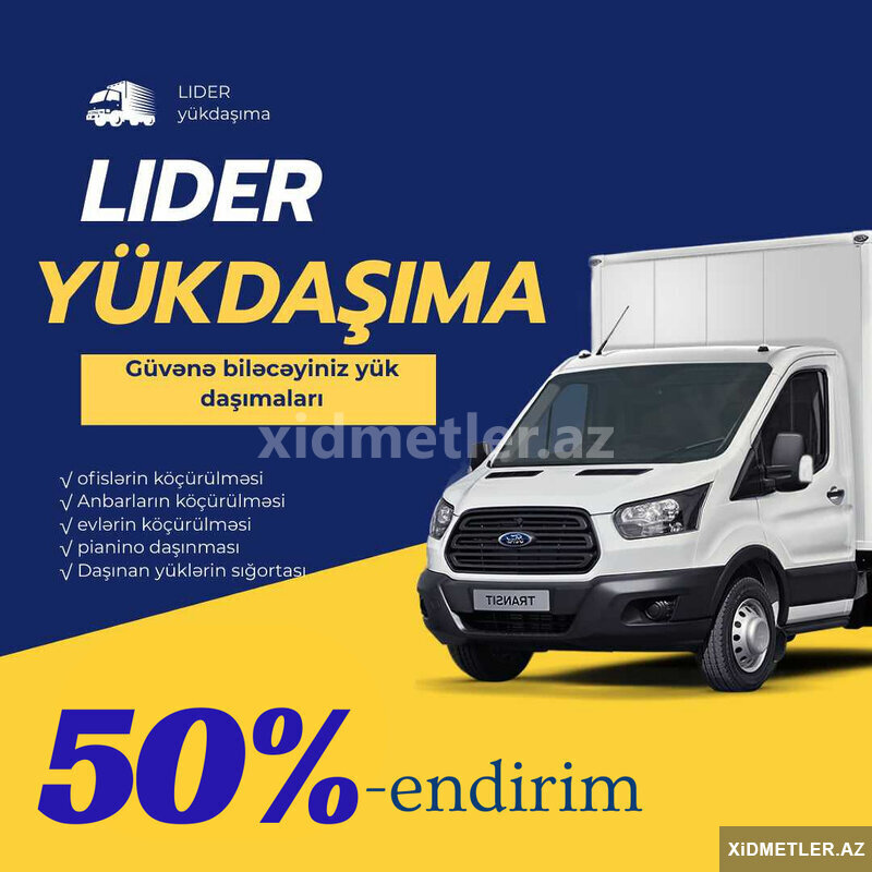 50 Azn Oparativ yükdaşıma xidməti sizlerin xidmetinizdedir.Əşyalar böyük bir diqqətlə və ən keyfiyyətli səviyyədə daşınır. Operativ işçı qüvvəmiz sayəsində vaxtınıza maksimum qənaət edəcək və xidmətimizdən məmnun qalacaqınıza